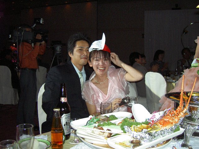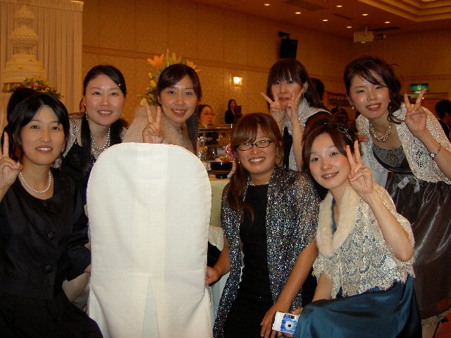 おねぇちゃんがいっぱい(^^) 椅子がなぜかぬりかべに見えるなぁ。 新郎新婦のお食事の残骸?
